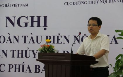 Phó thủ tướng Trương Hòa Bình phát biểu tại lễ khánh thành cảng container quốc tế SP-ITC sáng 18/9. Ảnh: H.B.